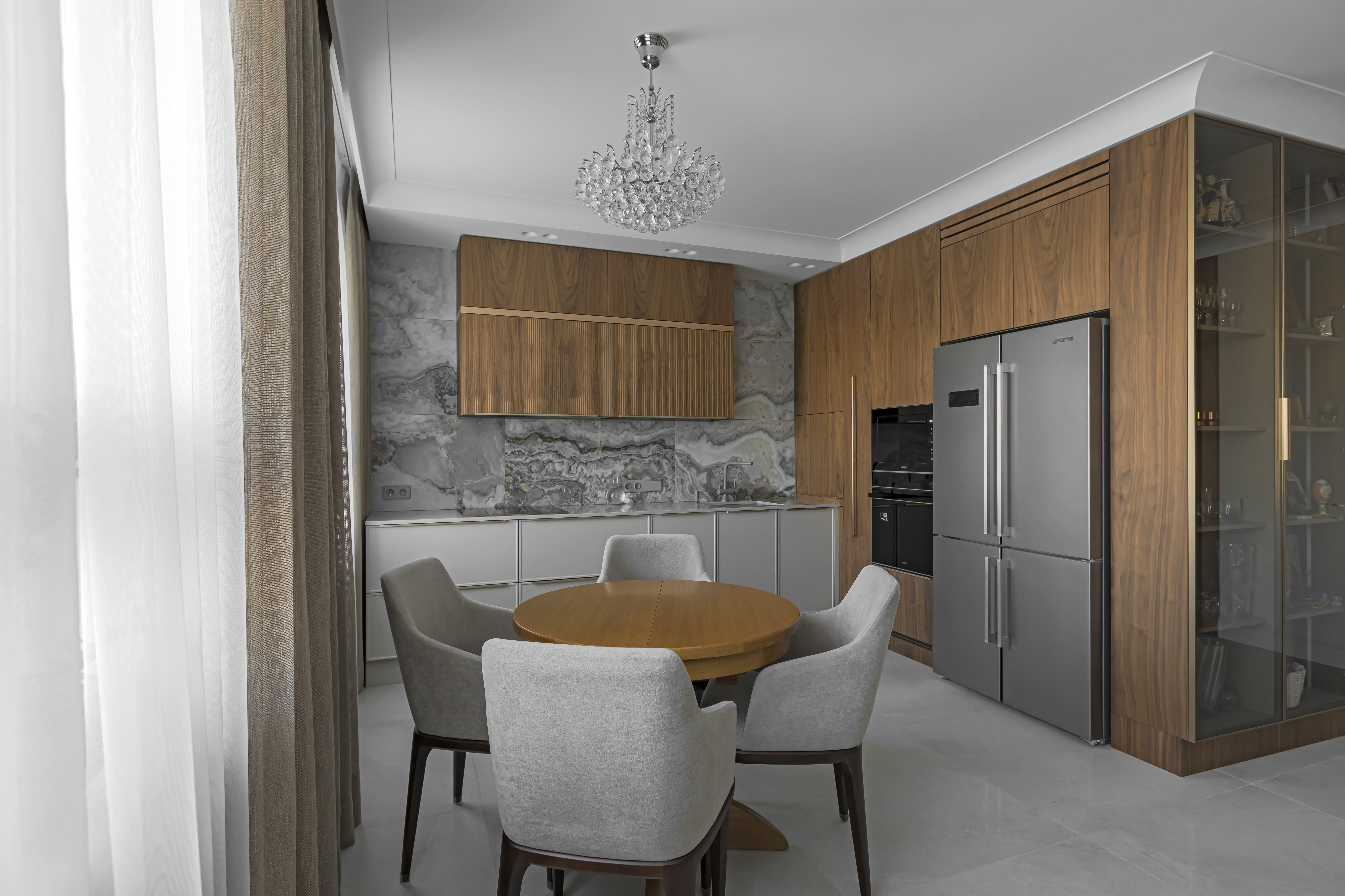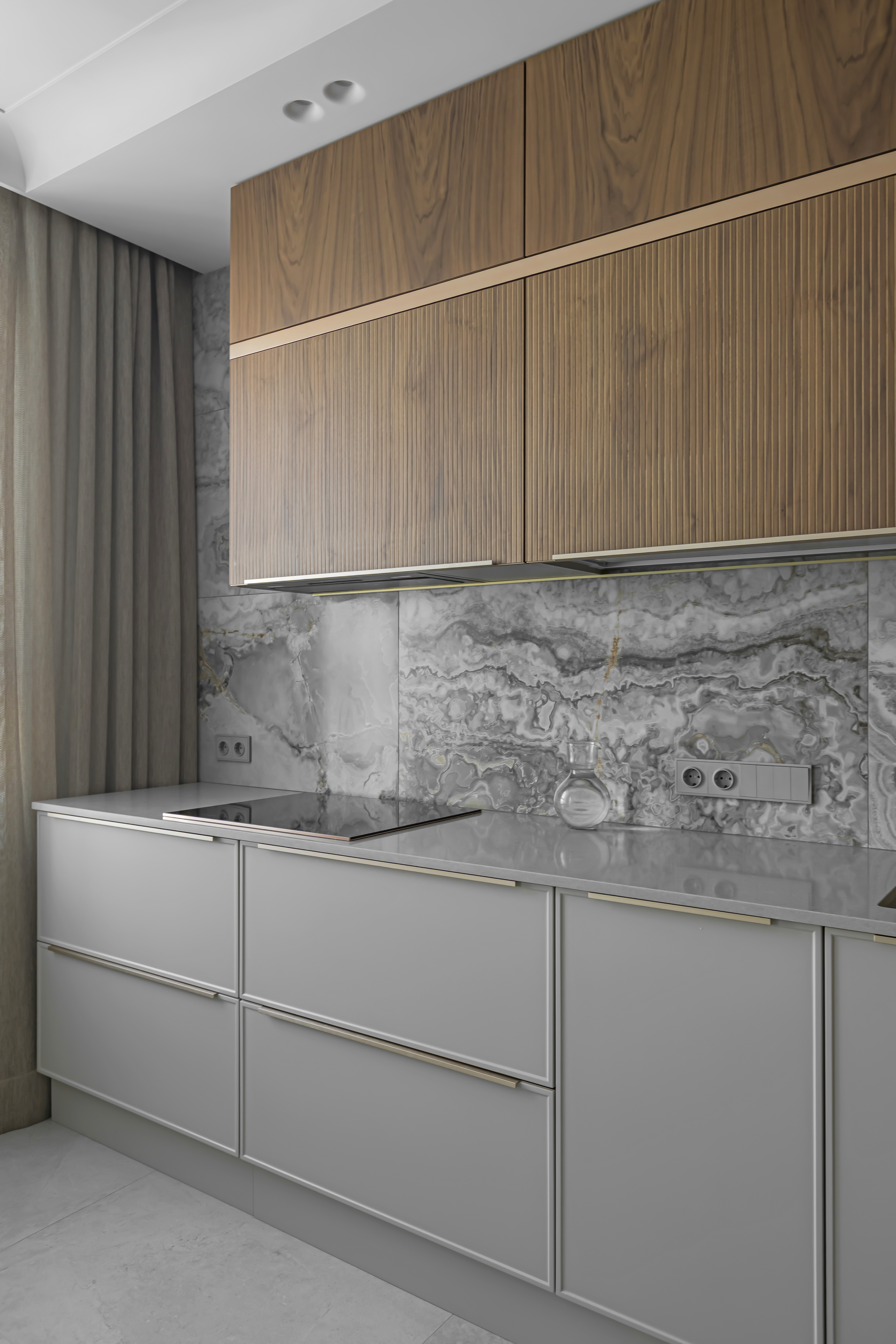 Стоимость кухни Прогма (в шпоне ореха) по типовому проекту на 3 метра: