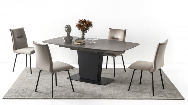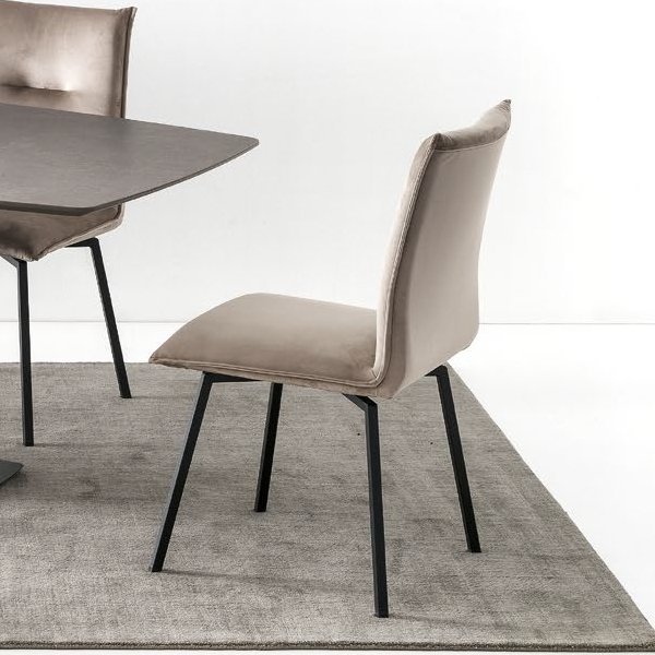 Представлен с мягкой текстильной обивкой, украшенной декоративной строчкой. Доступно несколько расцветок. Ножки сделаны из металла.
