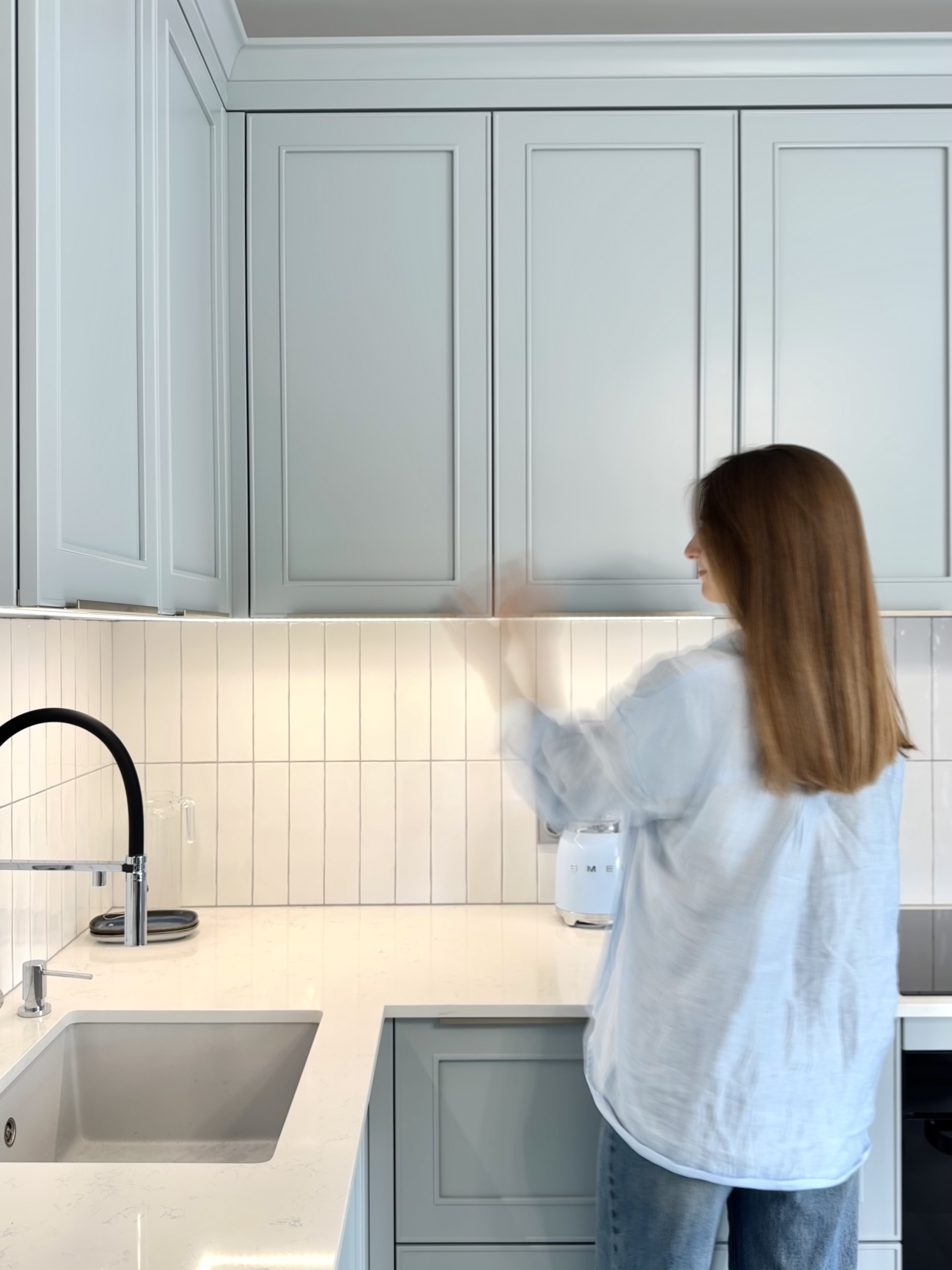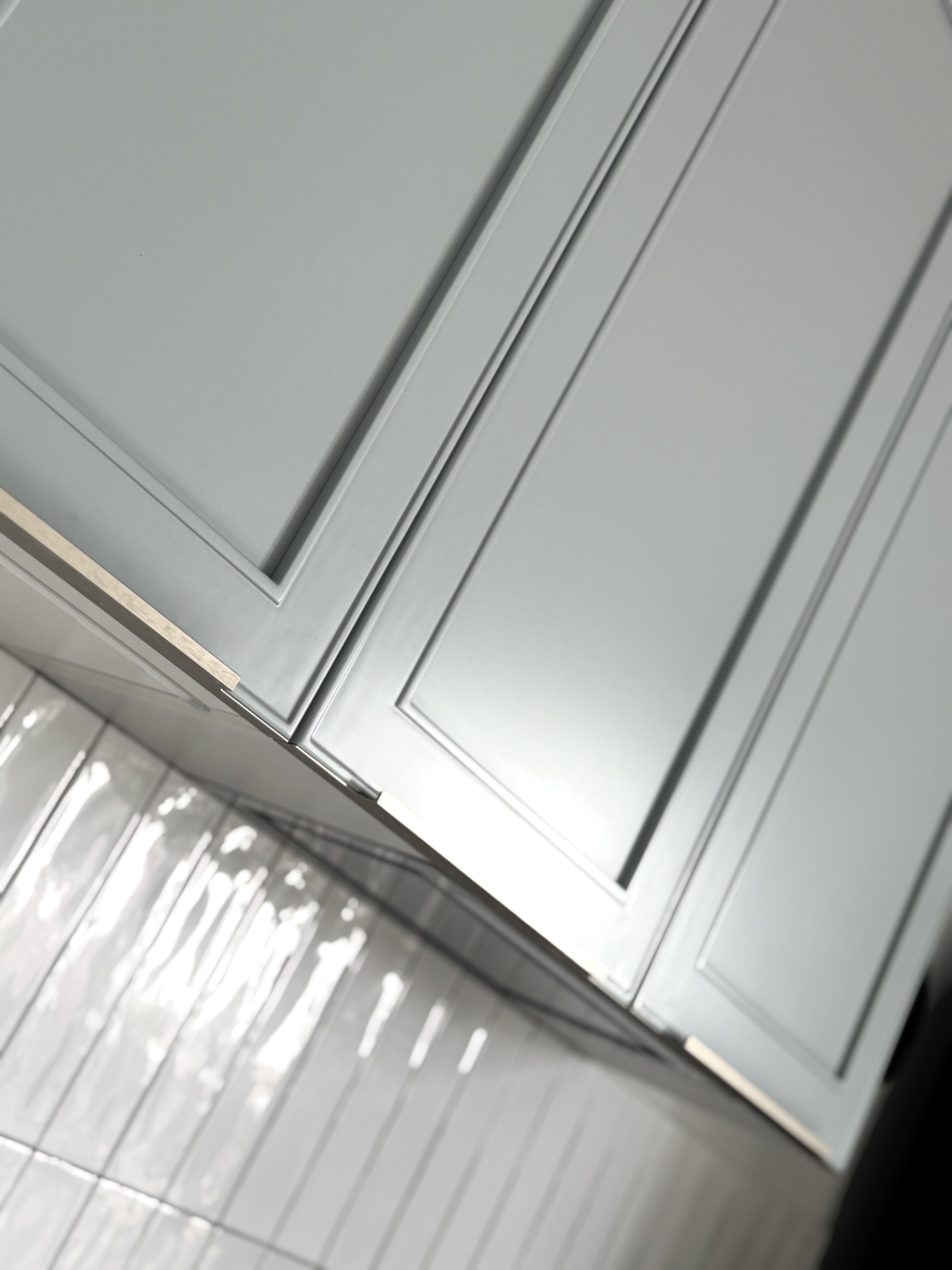 На нижних фасадах использовались накладные профильные ручки, верхние же открываются от профиля гола.